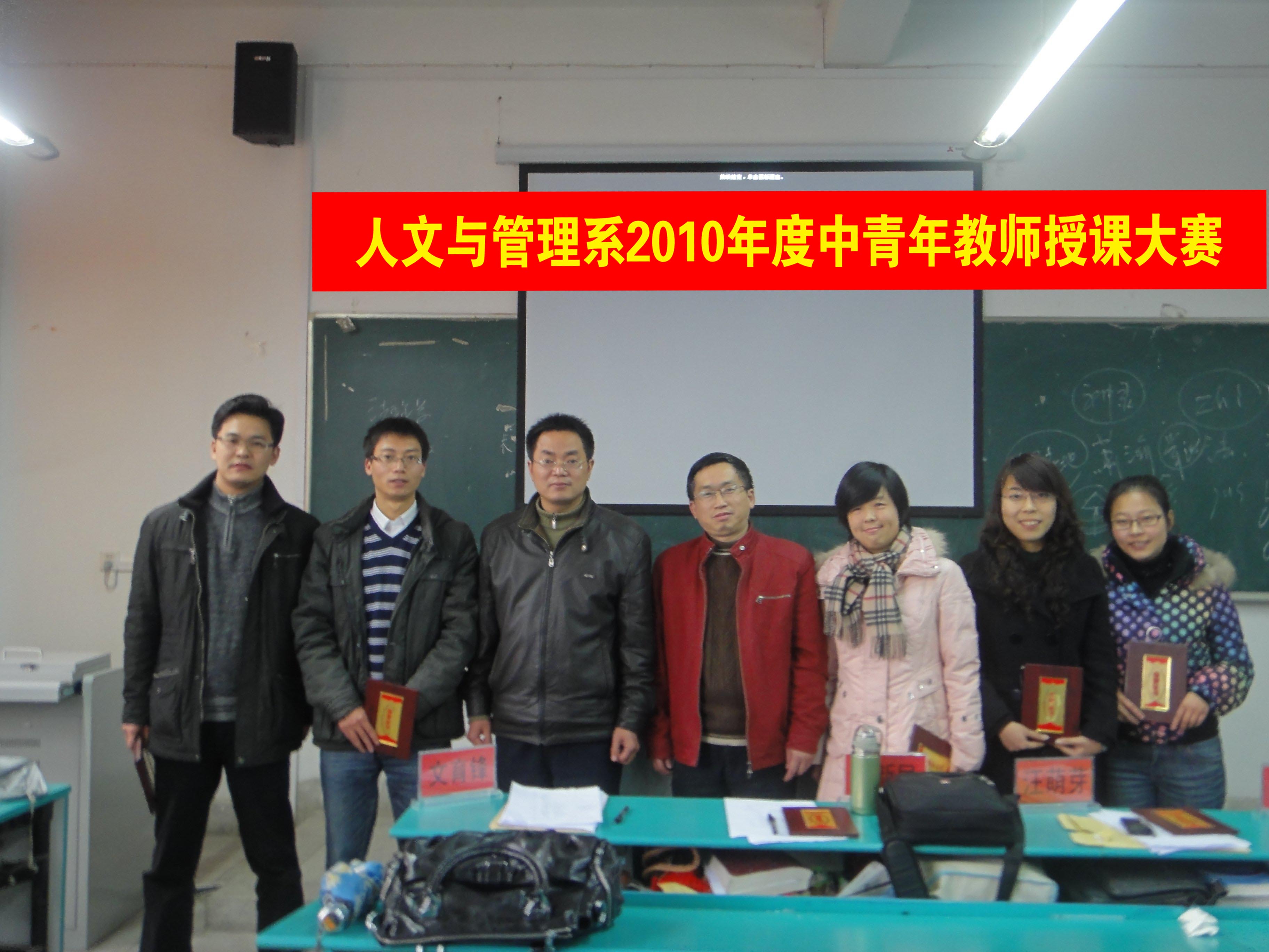 人文与管理系45周岁以下的专兼职教师参加了此次比赛。比赛以集中讲课的方式进行,重点考评教师的风范、知识面、教师的基本素质和能力、授课的方式、方法、技巧等,以 PPT兼板书相结合的方式进行。