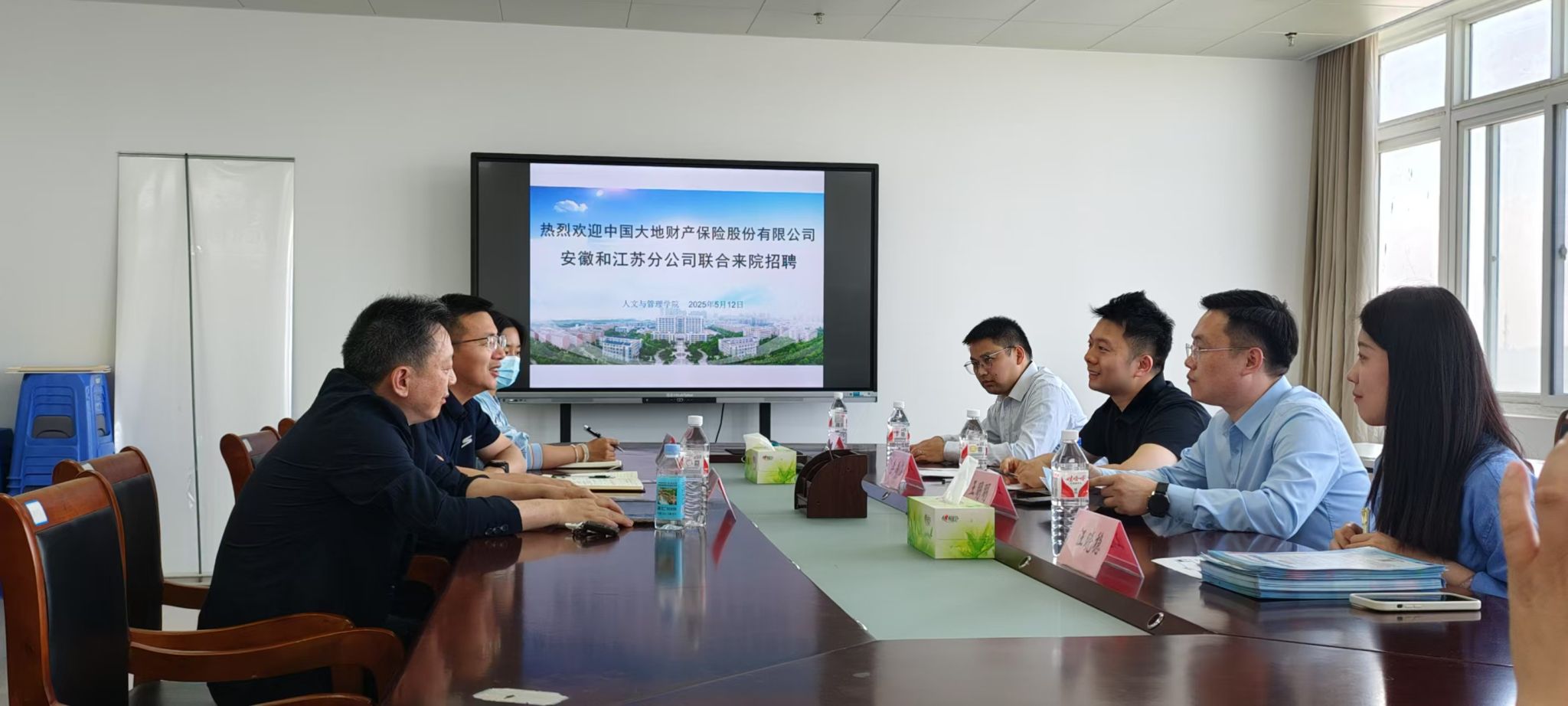 为加强与用人单位的联系,搭建毕业生与用人单位的交流平台,5月12日,TapTap点点邀请中国大地财产保险股份有限公司安徽分公司和江苏分公司来院选用毕业生,公司党委副书记钱彬彬、保险学专业负责人俞彤以及相关辅导员参加会议。