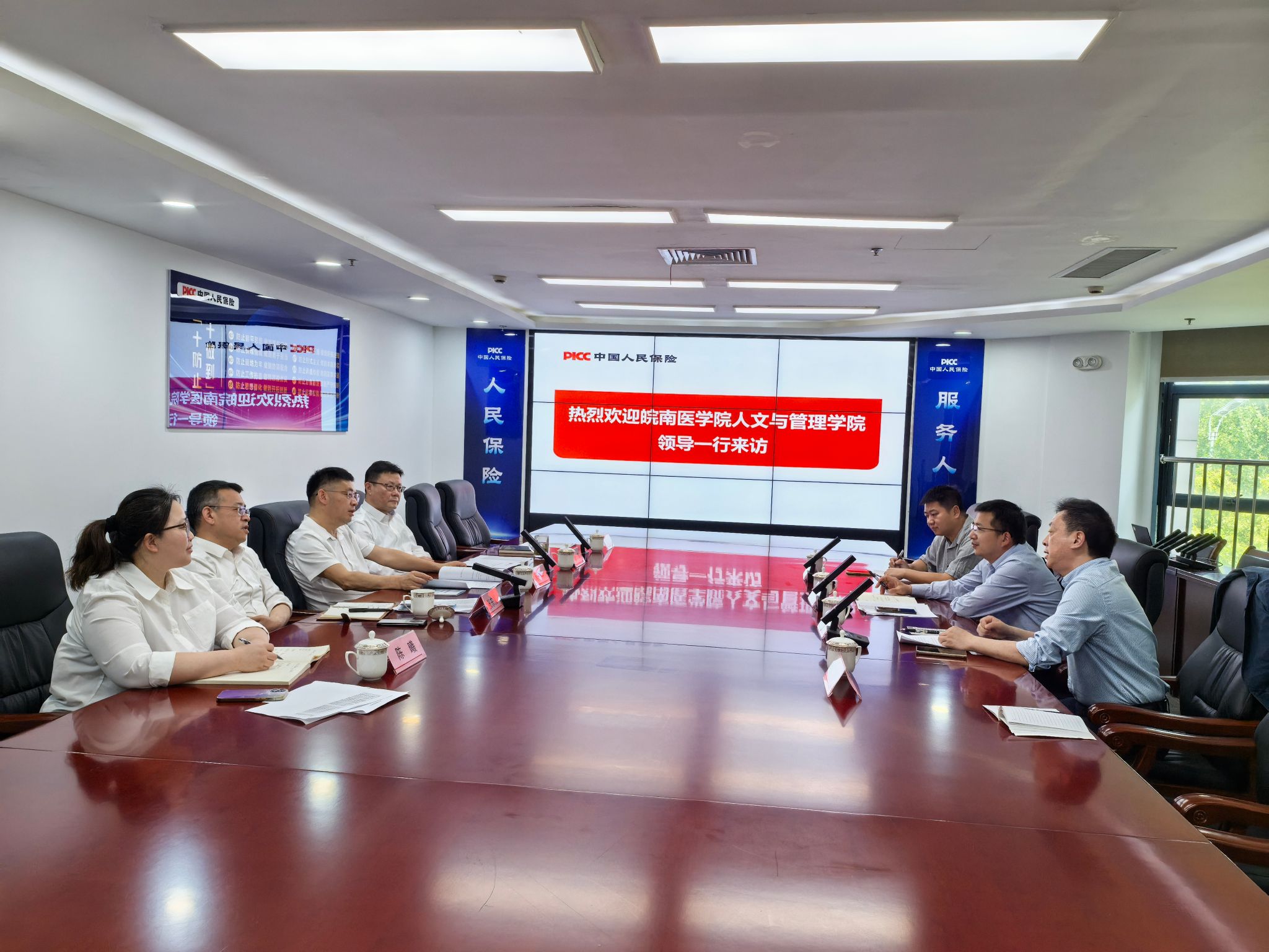 为进一步推动实习就业工作高质量发展,4月29日,公司党委副书记钱彬彬、医疗保险专业负责人俞彤一行赴中国人民财产保险股份有限公司安徽分公司洽谈实习就业。安徽分公司副总经理邓国华、人力资源部总经理黎明、理赔部总经理张东义出席会议。