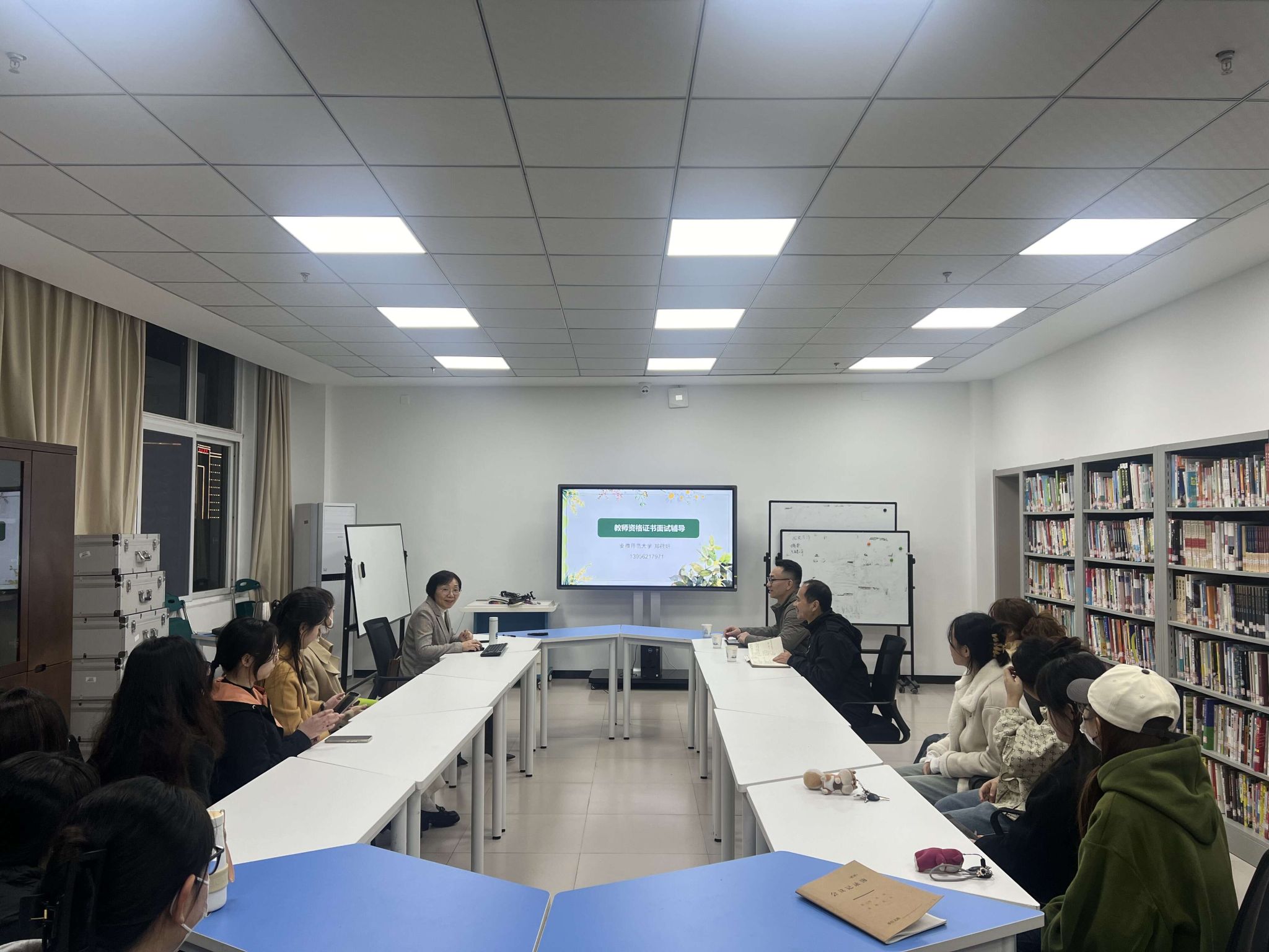 讲座围绕“考什么、怎么考、如何备”三个方面展开,详细解析了教团队格证面试的考核内容,包括面试流程、试讲环节、问答环节以及考核指标和评分标准等关键要素。郑筱妍结合实例,深入浅出地讲解了每个环节的具体要求和注意事项,使同学们对面试有了更直观、更全面的认识。在讲座过程中,还安排了模拟面试环节,郑筱妍对员工们的课程进行一对一现场指导,针对每位同学的具体表现,提出了个性化的建议和改进措施,使同学们在实战中得到了锻炼和提升。