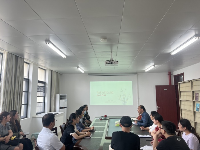 李秀教授以“焦虑与放松训练”为标题,从“焦虑症的概述”开题,再具体到“放松训练”,并以“腹式呼吸”为主线讲解呼吸方式,详细介绍腹式呼吸的正确方法,并带领大家尝试腹式呼吸和冥想训练。她既富有学术性又有明显实用价值的讲解介绍,引起参会师生的热烈讨论,尤其是放松训练的实践环节,给在场的老师和研究生进行科研创新和后续教学工作及日常生活以新的启发与感触。