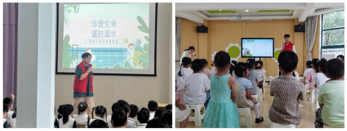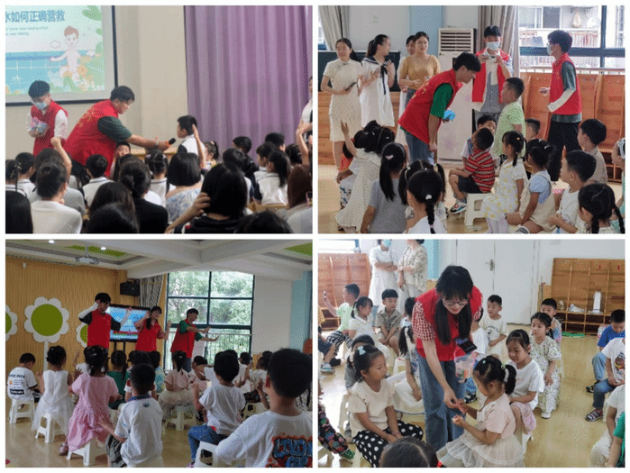 6月29日,博谘实践队暑期三下乡社会实践团队--踏淼筑梦实践队前往芜湖市鸠江区嘉禾东紫幼儿园和博雅幼儿园开展“防溺水安全教育”小课堂。活动过程中,实践队成员用活泼俏皮的语言对幼儿园小朋友进行防溺水知识的提问,并从预防溺水、溺水自救、如何救助溺水人员等多个方面详细解说防溺水有关知识、溺水事故的危害性及严重后果,还通过现场指导小朋友们学习防溺水手势舞,加深小朋友们对防溺水知识的记忆。