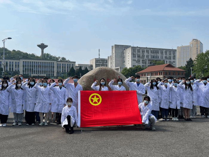 上午9时,身着白大褂的共青团员整齐列队,紧握右拳,在领诵者的带领下郑重宣誓,“我志愿献身医学,热爱祖国,忠于人民,恪守医德……”铮铮誓言句句入心、掷地有声,发出了时代强音,展现了皖医学子践行医者仁心、同心抗疫、维护健康的决心和担当。
