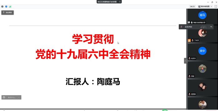 4月21日下午,TapTap点点开展线上主题党日活动,举办第三期“人文思政学习讲坛”暨党的十九届六中全会精神专题读书班。会议由公司党委书记王军主持,邀请马克思主义公司副经理陶庭马博士主讲,全院教职工参加。