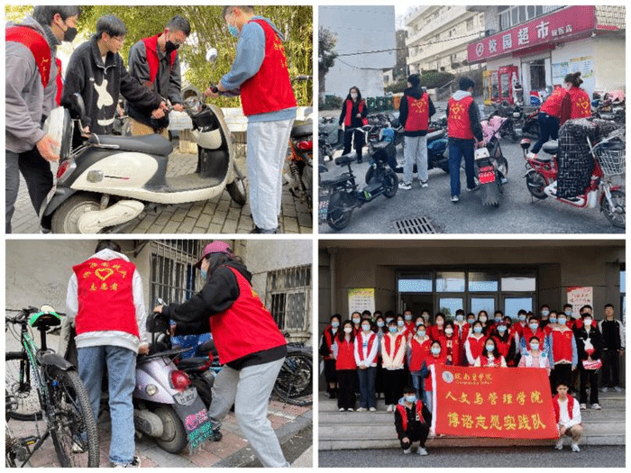 雷锋精神,人人可学;奉献爱心,处处可为。为促进校园环境更加整洁,博谘·筑梦青春实践队组织公司广大学子动手清理校园电动车乱停乱放的状况,志愿者忙碌的身影在各个停车地点交互穿梭,让原本凌乱停放的车辆群渐渐变得整齐有序,道路也变得宽敞通畅,有效解决了原先混乱和占用道路的问题。
