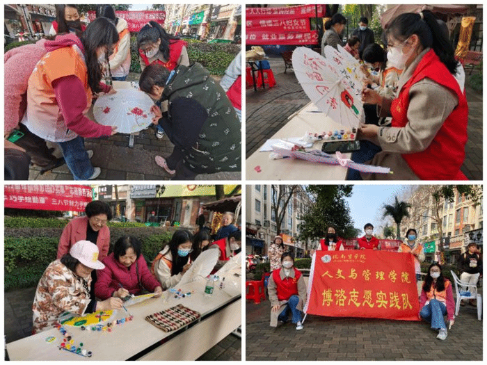 阳春三月,桃李争艳。为传承文化、感恩社会,也向女性致以节日诚挚的祝福。4日上午,“博谘·心梦”实践队成员与芜湖市博物馆志愿者共同前往镜湖区香格里拉社区,与社区居民们一起绘涂油纸伞,交谊联欢,彼此接洽情感,其乐融融。