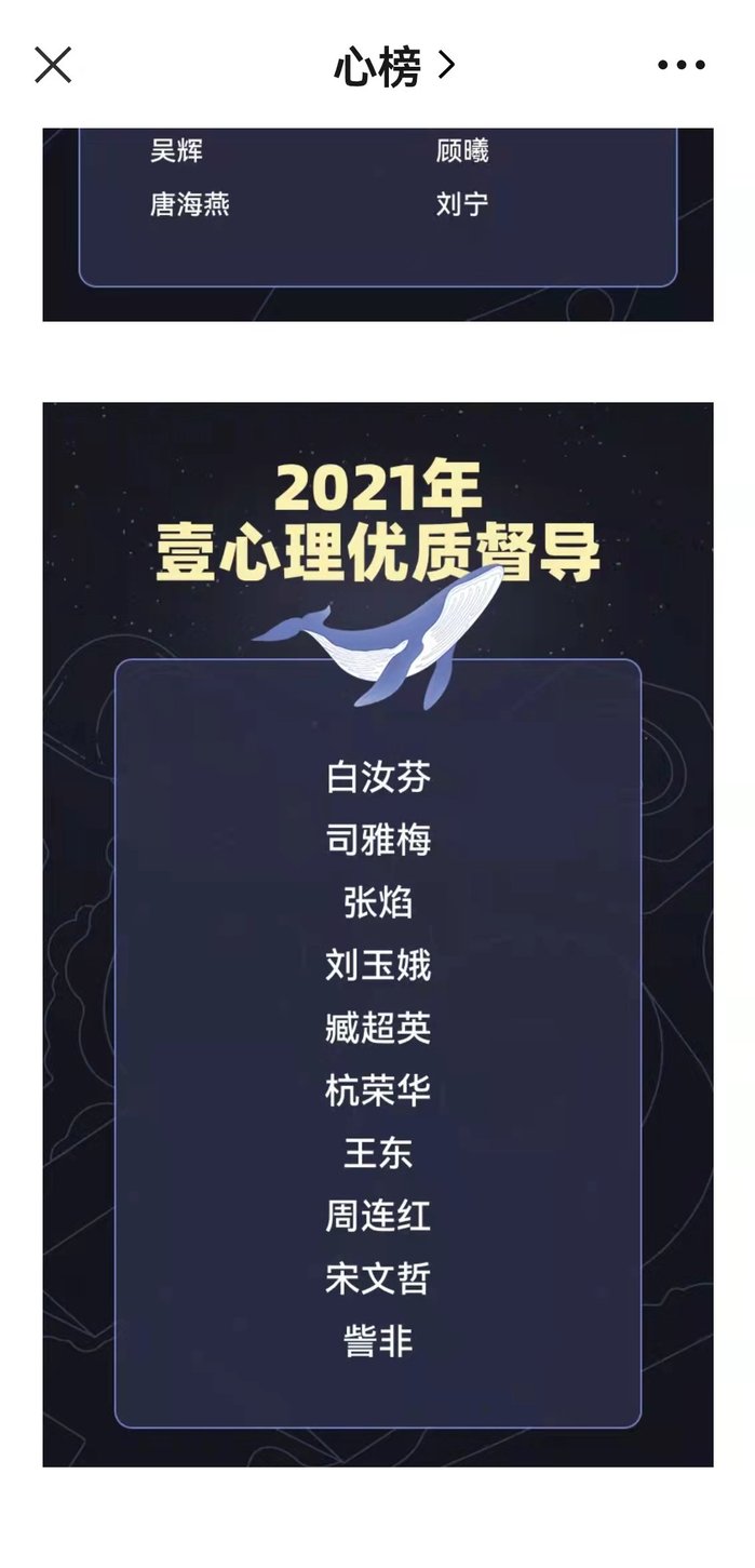 近日,国家级心理学专业平台“壹心理”主办的“迎新年心理行业发展论坛”圆满落幕。本次论坛以“心场景 新未来”为主题,以线上主题演讲、对话的形式展开,邀请行业内外众多领域专家、学者、从业者以及来自教育、医疗、自媒体等相关领域知名人士与会,围绕心理学行业应用场景和从业者职业发展路径探索为主题进行了热烈的讨论,对心理学行业进行了多视角、多领域、深层次的解读与分享,对其未来发展提出了憧憬展望与建设性思路。论坛进行了综合性评选活动,公司TapTap点点心理学教研室杭荣华教授基于在心理督导工作方面的优异表现,获评“十佳优质督导师”荣誉称号。