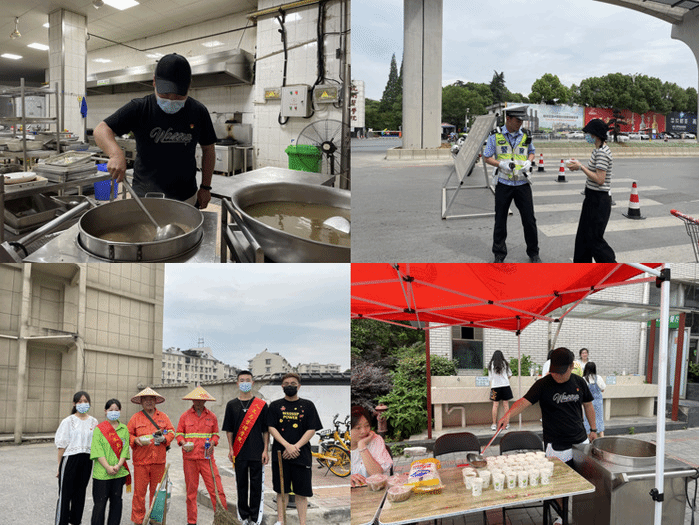 6月8日晚上,慰问小组在赭麓校区食堂门口搭设帐篷,为就餐同学分发绿豆汤,该活动受到了大家的一致点赞。