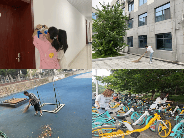 6月10日下午,“净化校园”活动伴着蒙蒙细雨在一群劳动身影中开展,员工党员们对5号教学楼以及校园内柏油路进行清扫,协助校内保洁人员打扫场地,并对校门外共享单车以及校内违规摆放车辆整理,打造整洁校园。