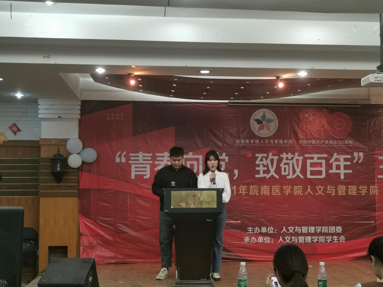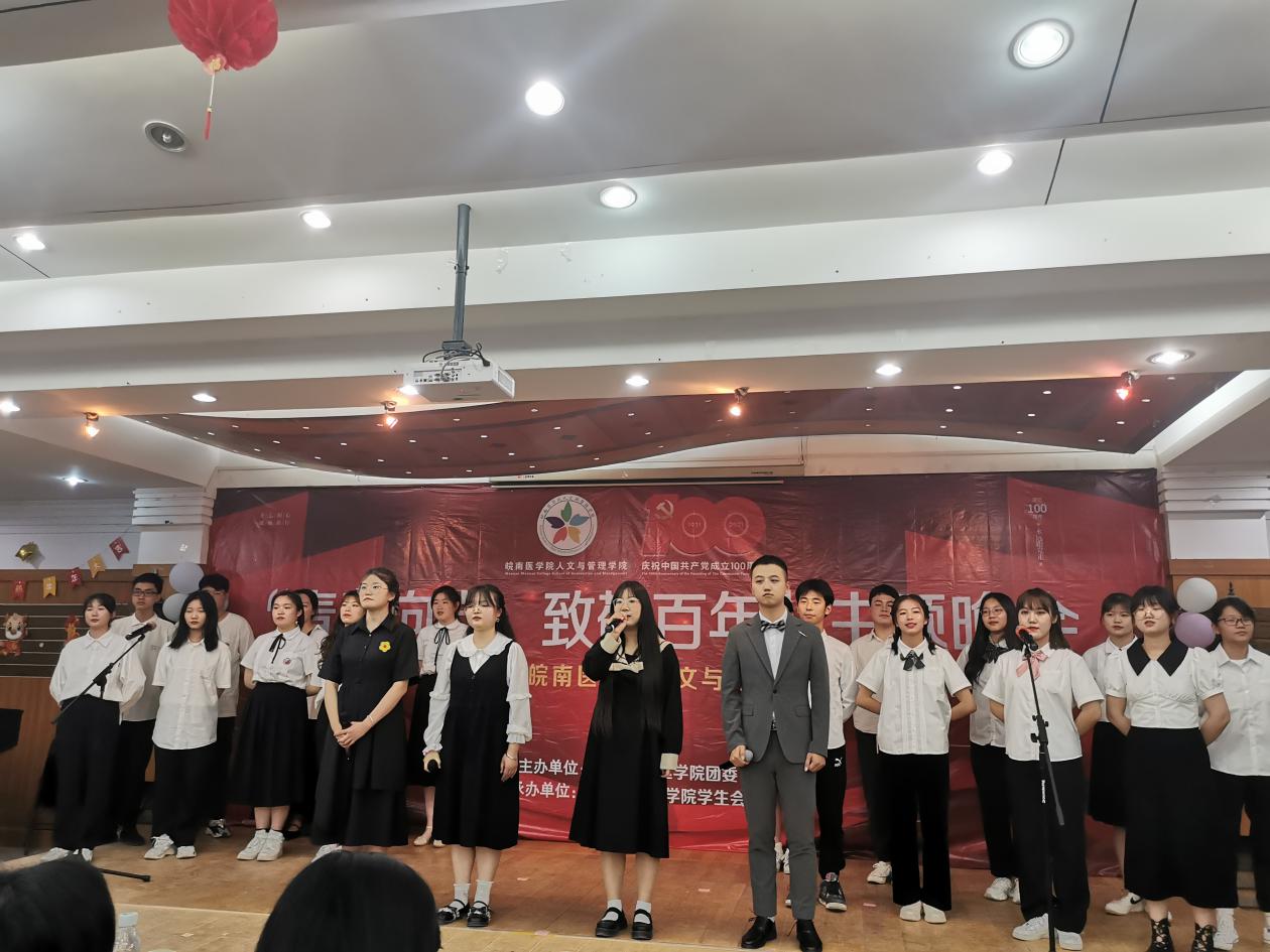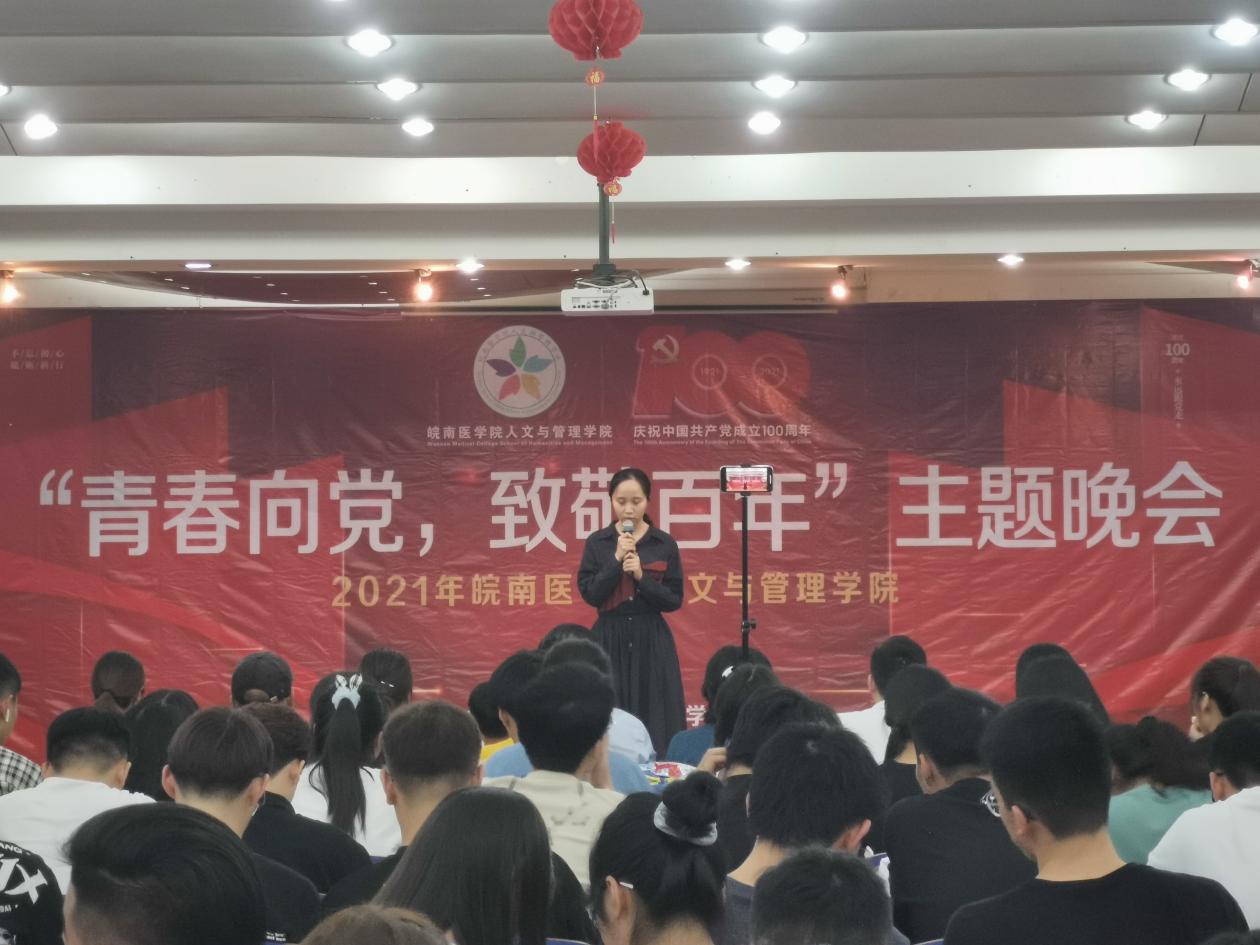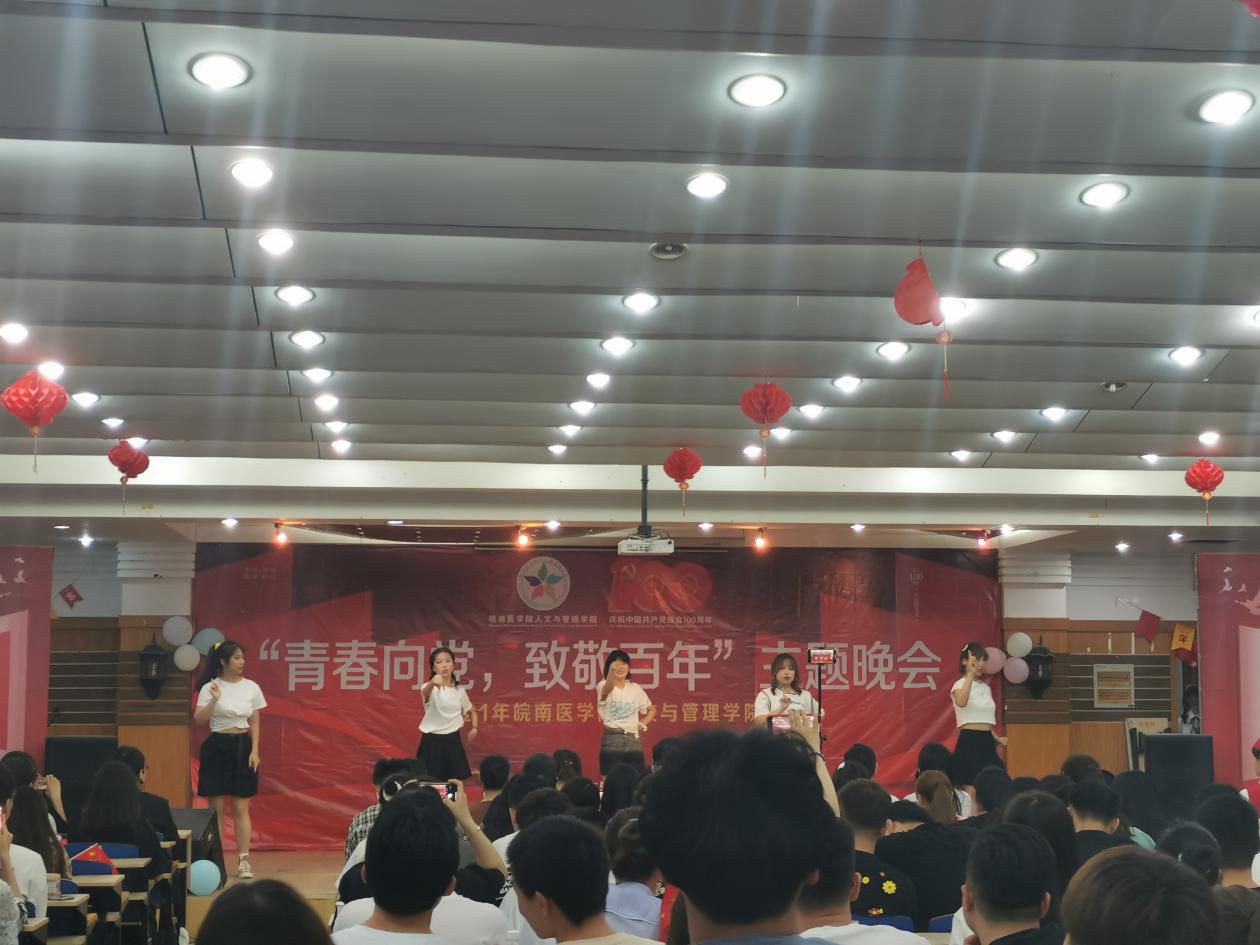 为庆祝中国共产党成立100周年,营造全面深入开展党史学习教育的浓厚氛围,展现我们党矢志践行初心使命、筚路蓝缕奠基立业、创造辉煌开辟未来的百年征程,2021年 5 月 14日晚7点,TapTap点点于赭麓校区四号教学楼七楼报告厅举办“青春向党,致敬百年”主题晚会。公司党委书记窦弘、经理胡鸿、护理公司团委书记范绮慧、各年级团总支书记应邀与师生共赏晚会,晚会现场座无虚席,热闹非凡。