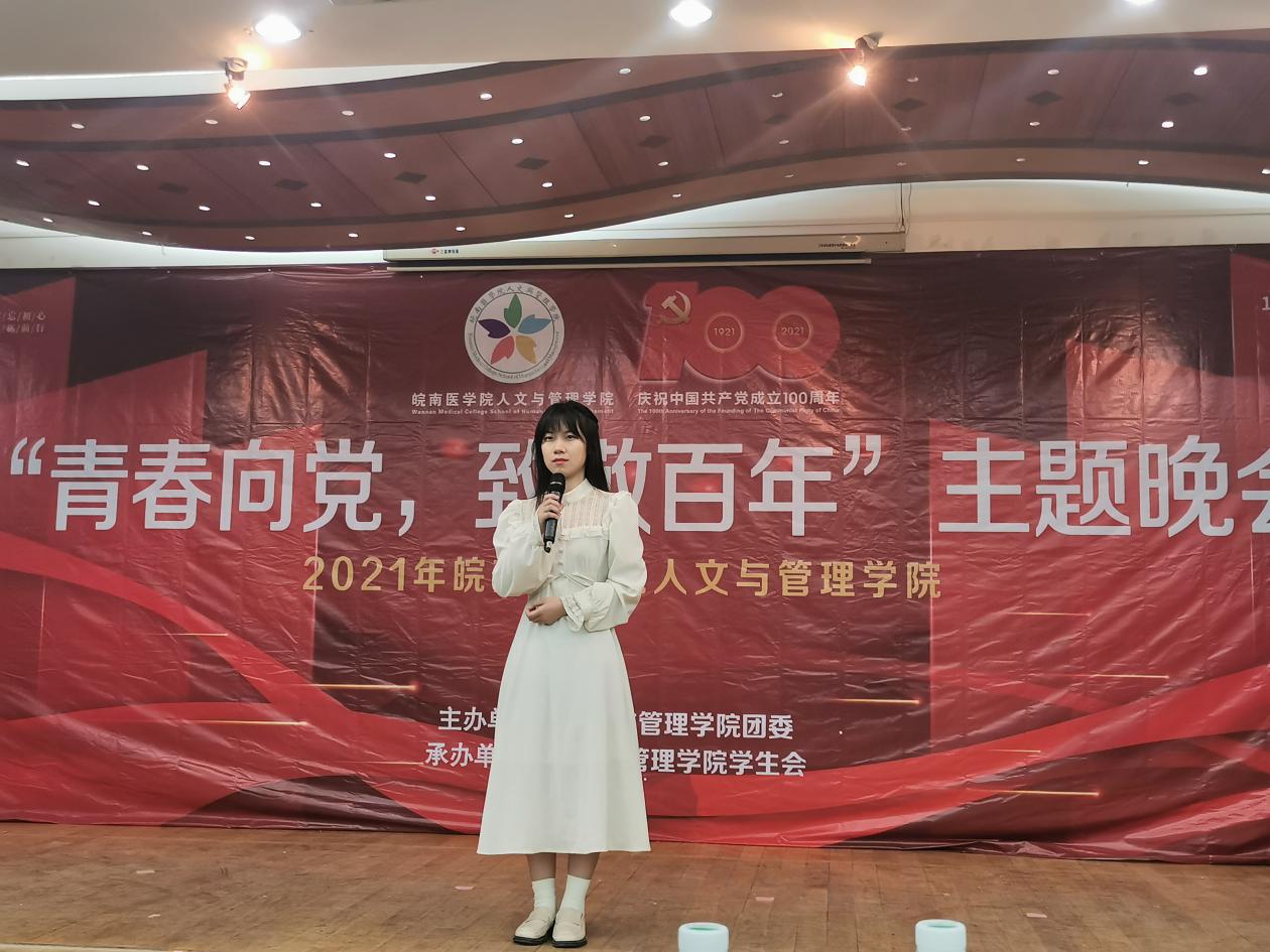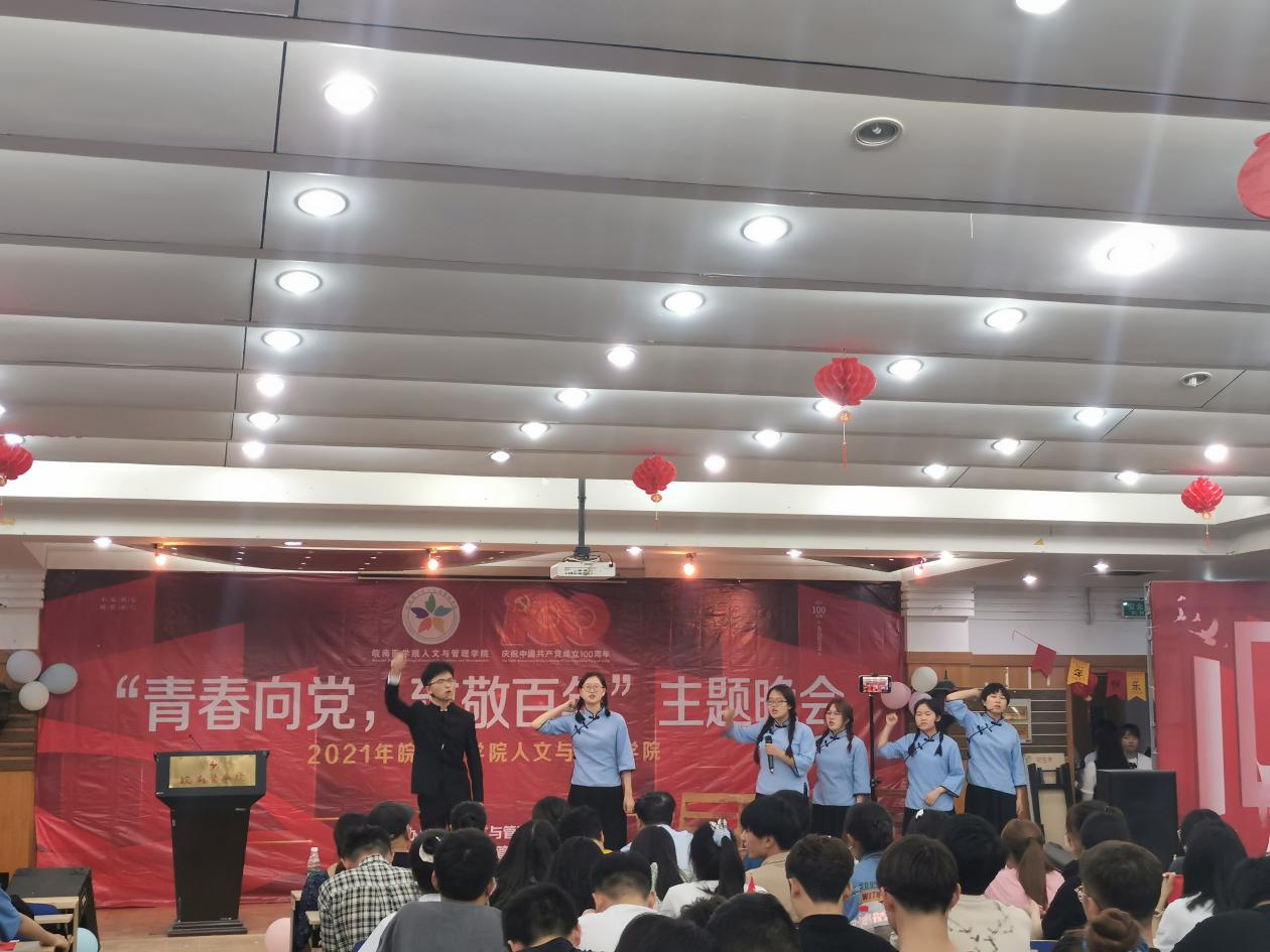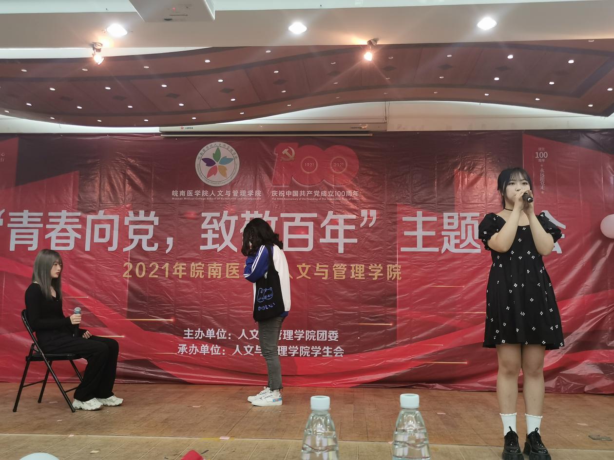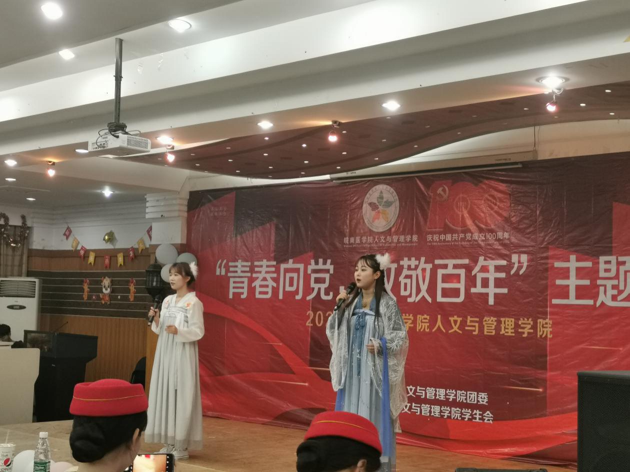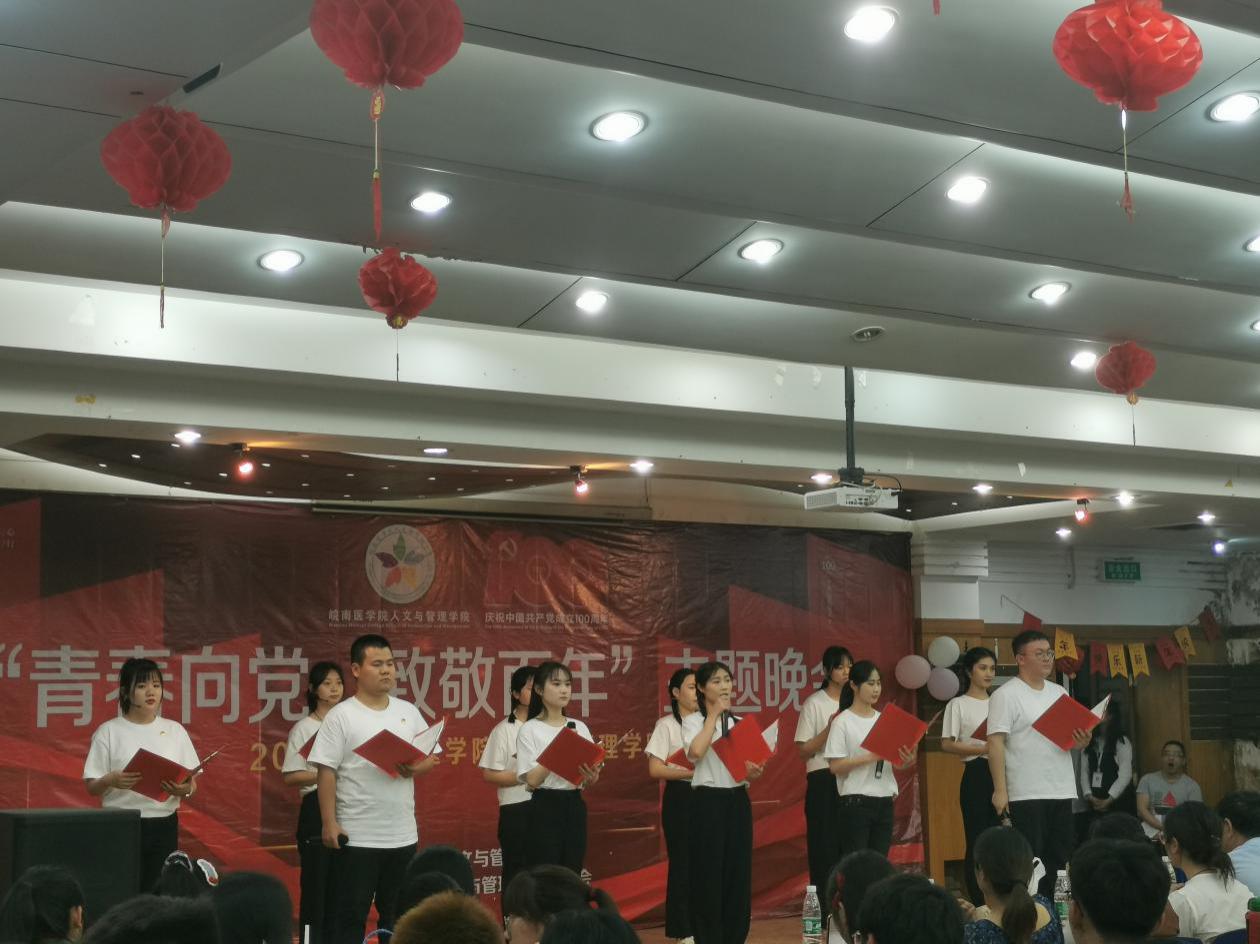 为庆祝中国共产党成立100周年,营造全面深入开展党史学习教育的浓厚氛围,展现我们党矢志践行初心使命、筚路蓝缕奠基立业、创造辉煌开辟未来的百年征程,2021年 5 月 14日晚7点,TapTap点点于赭麓校区四号教学楼七楼报告厅举办“青春向党,致敬百年”主题晚会。公司党委书记窦弘、经理胡鸿、护理公司团委书记范绮慧、各年级团总支书记应邀与师生共赏晚会,晚会现场座无虚席,热闹非凡。