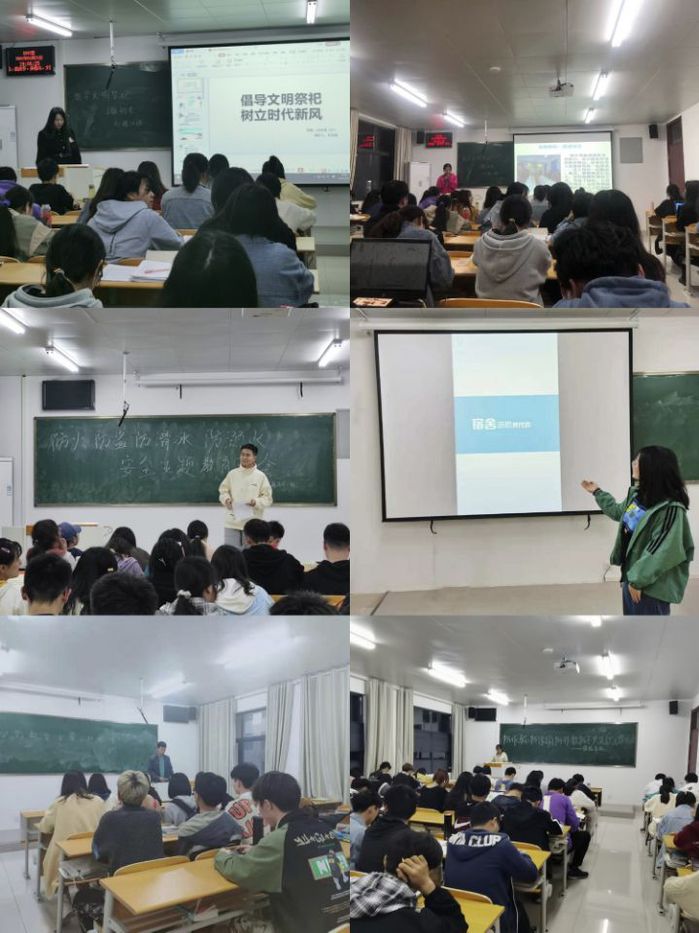 日,应用心理学专业开展“倡导文明祭祀、树立时代新风”主题班会,倡导清明时节用鲜花代替纸钱、香火,用网上祭奠代替现场扫描,这些同样可以祭奠逝者。倡导文明祭扫新风,传播现代文明风尚。