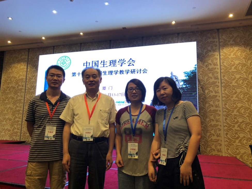 会上,公司生理学教学团队共提交会议论文摘要4篇,其中郑超老师的“创新理念始终贯穿生理学教学的实践与思考”被遴选为大会报告,报告指出在开展生理学特色教学、培养创新复合型人才中,我们积极响应国家号召、高度符合社会需要,引起与会者的广泛共鸣。汪萌芽老师的“以创新型人才培养为导向的实验室开放设计与实践”、张环环老师的“以生物-心理-社会医学模式为导向的《生物医学概论》课程建设初探”、徐爱萍老师的“面向普通医公司校医学影像学专业的生理学双语教学探索与实践”进行书面交流。同时,汪萌芽教授作为中国生理学会常务理事、人民卫生出版社《生理学》第9版教材的作者,应邀作了题为“有关细胞电生理学教学的若干问题”的大会报告。他紧密结合生理学教学难点,以及解决实际教学问题的解惑之道,进行了详细阐述。汪教授还作为特邀嘉宾在“生理学教学的今天和明天”的主题讨论中,提出了“不忘初心”——加强创新能力训练、“面向生命”——重视心理生理学培养以适应“生物-心理-社会医学”模式的创新型人才等观点,给在座的全国生理学教育工作者们以新的启迪。会议期间,汪萌芽还作为继任委员出席了新一届中国生理学会教育工作委员会会议、作为颁奖嘉宾为微课比赛获奖者颁奖。此外,公司生理学教学团队在暑期期间还应邀参加不同类型的教学交流活动。8月6日,汪萌芽教授应邀为“中国生理学会生理和行为学实验培训班”作了题为“脊髓运动神经元的细胞电生理技术与突触传递研究”的特邀专题报告,得到与会者的一致好评。