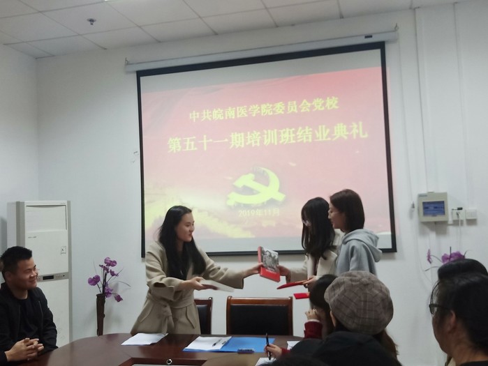 首先,全体人员在伴奏下庄严地唱起了国歌。接着,班主任成铭总结了党课开展以来的教学内容,阐述了通过看党章,学党章,每位入党积极分子都对中国共产党的历史使命和新时代的征程有了深刻的认识并勉励学子继续努力。随后,成铭为本次培训班优秀学员颁发证书及奖品,在座的入党积极分子都羡慕不已并向优秀学员看齐。最后,訾梦婷总结陈词,为各位入党积极分子敲响了警钟,不允许有丝毫精神上的懈怠,路漫漫其修远兮,须上下而求索,此次党课结业典礼完美谢幕。