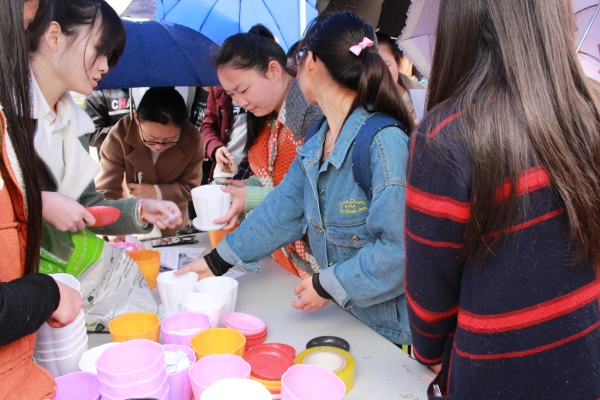 绿色领养,见证成长。活动当天,虽然天空飘起了细雨,但雨水阻挡不了同学们的热情,饮食服务中心门口广场处依旧一片热火朝天的景象,同学们积极参与活动,在现场领取绿色种子和小花盆。“今天,播撒下一颗种子,来日,收成起一片绿色”的活动宗旨深入贯彻到了每一位活动参与者的心中。