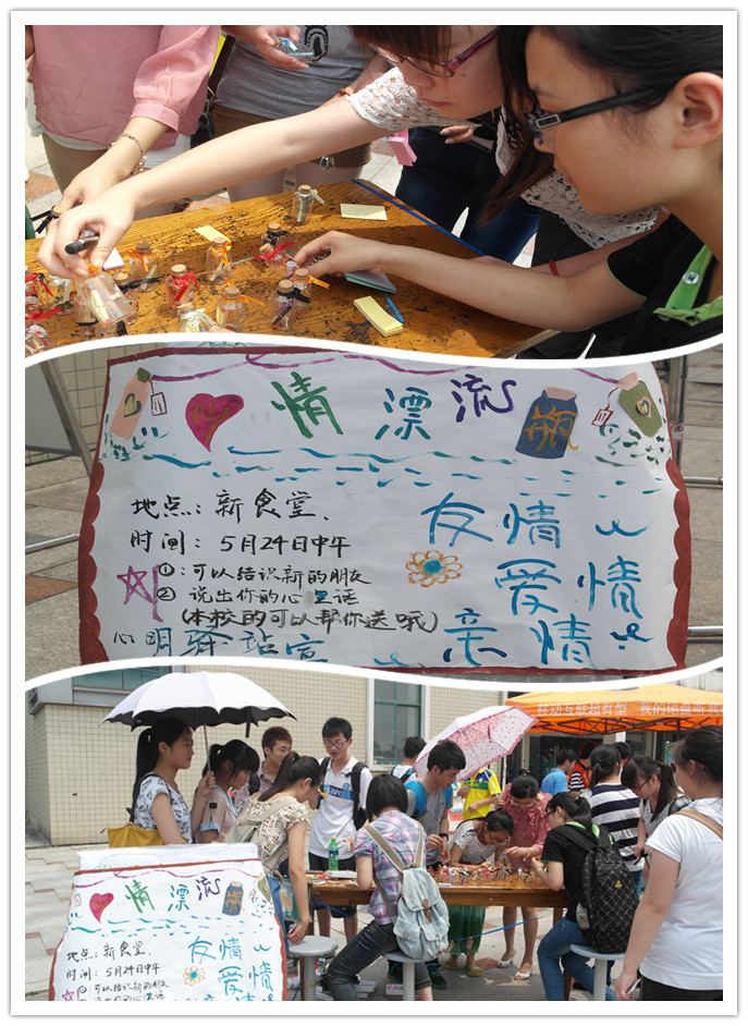 心情漂流瓶,传递积极心理正能量。5月24日午时,人文与管理系“心明驿站”在新食堂开展了“积极心理正能量,心情漂流瓶”活动。活动中,同学们热情参与,纷纷以书面的形式表达了自己的心情、思想以及积极的生活态度,展示了当代老员工对自由、希望和友谊的感知能力,面对挫折不屈不饶的战斗力。每一个漂流瓶都向我们传递着心理正能量,鼓舞着我们乐观向上,积极进取。