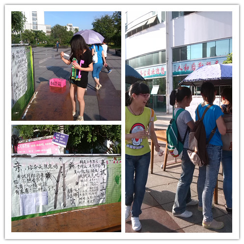 考试上上签 调节备考心理。考试月即将来临,5月58日中午,“心明驿站”在老食堂门口开展了“考试上上签”活动.贴出了关于考试焦虑的测试题,同学们对自身心理状况作出评估.随后,采取自由式无监督的活动方式,将抽签箱放置在桌上由同学随意抽取,头脑风暴的形式解答目前考试焦虑等心理问题,通过抽签的方式,对员工做积极的心理暗示.更能引起员工的兴趣和解答的热情。