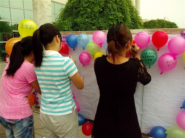 此次活动在歌曲《听妈妈的话》中拉开帷幕。校园里过往的同学们纷纷将自己对母亲的感恩之情化成话语写在五彩缤纷的气球上,伴随着悠扬的歌曲,同学们将原本单调的展板用爱心贴满。