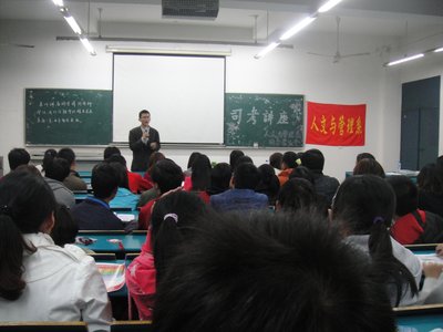 2010年11月7日晚7点,由合肥万国公司和人文与管理系团委联合举办的司法考试讲座在西103教室举行,系副主任王军、系团委员工会干部和法学专业的员工参加了本次会议。